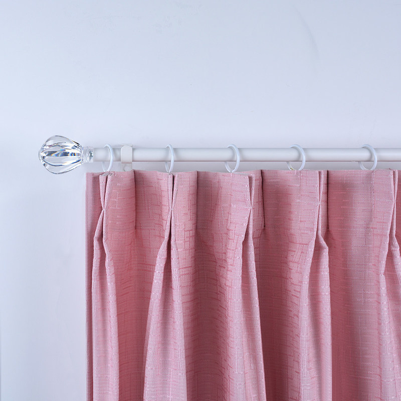 The poles of this series are made of iron, which has high hardness, good load-bearing, scratch resistance and wear resistance. It is a very popular curtain rod material in the market. The matching curtain head is made of acrylic, with a bright surface and high-end atmosphere. The supporting bracket is a thickened aluminum alloy bracket, which is strong and durable, and has strong bearing capacity.